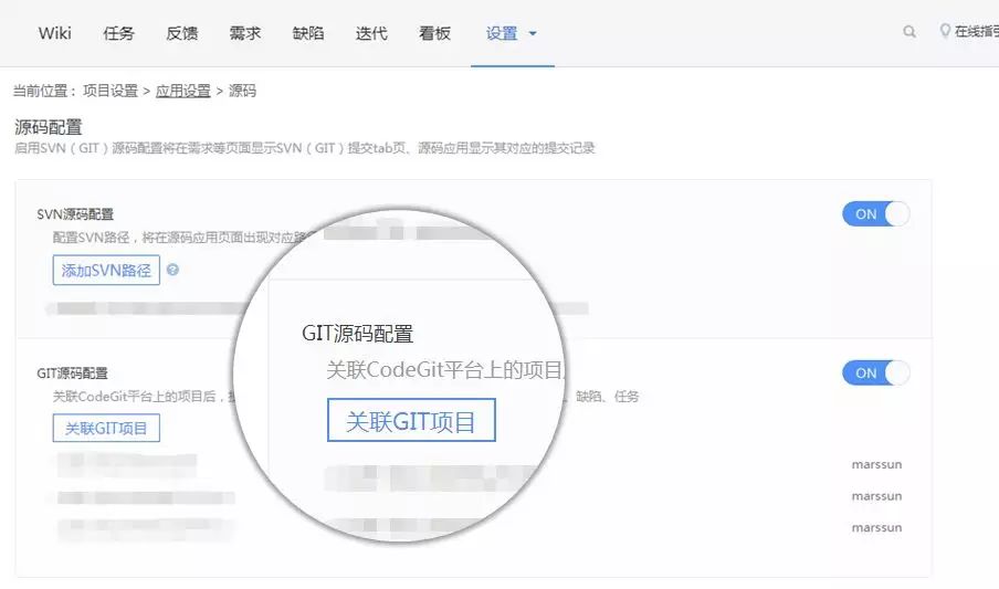 第一步,TAPD的项目设置页面,点关联Git项目