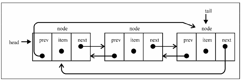 tail的next属性指向第一个节点head。第一个节点head的prev属性指向最后一个节点tail。