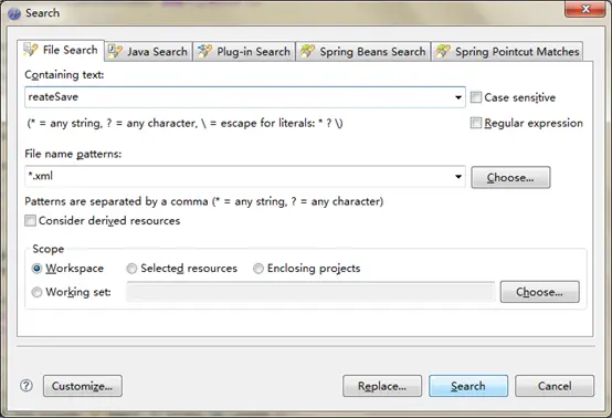 然后我们查找reateSave.do对应的action,在myeclipse中ctrl+H打开查找,