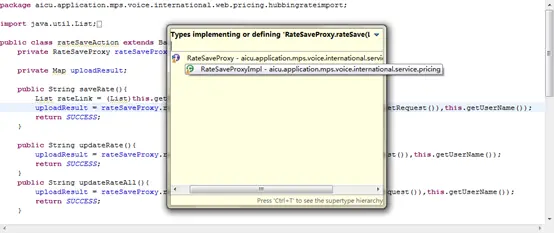 我们把光标定在rateSaveProxy.rateSave的rateSave中,ctrl+T跳到RateSaveProxyImpl
