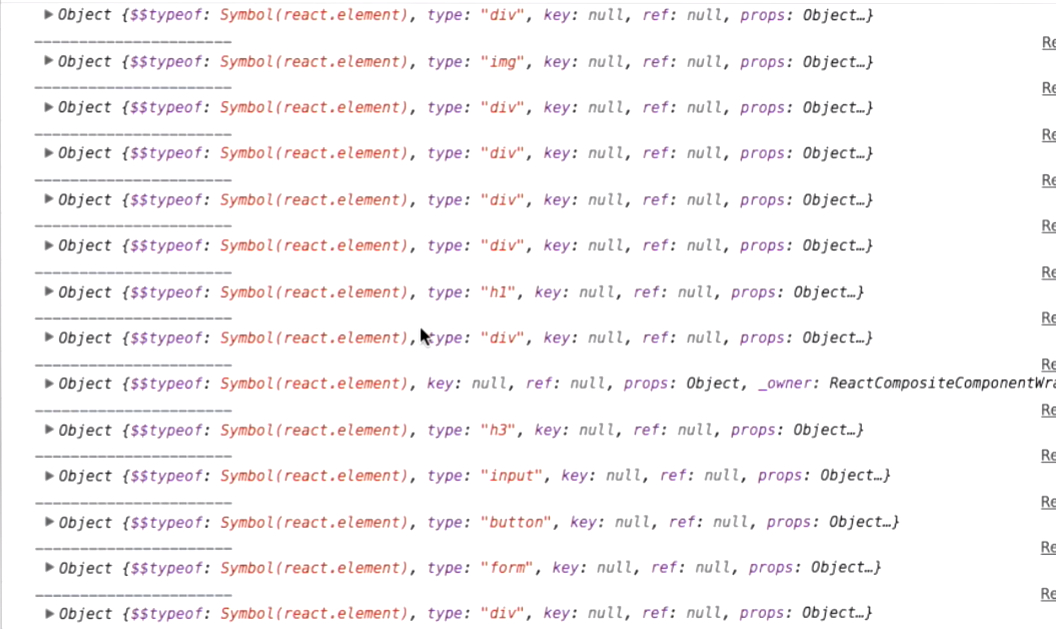 这里每当Virtual DOM生成,都打印了出来,可以看到,它代表着真实DOM,而每次生成全新的,也是为了能够比较old dom和new dom之前的差别。