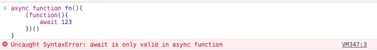 await在什么时候可以用? 只有在async函数体内部使用,而且这个作用范围是不可以继承下去的。