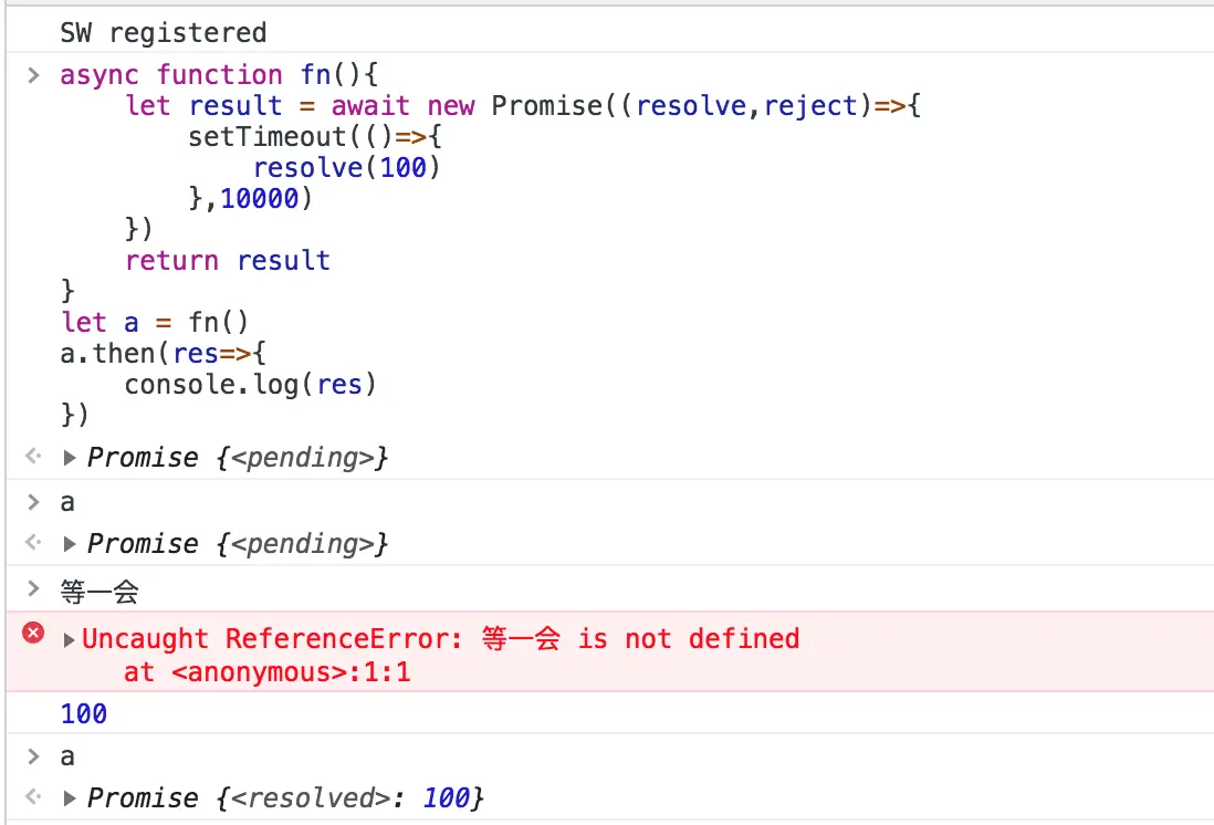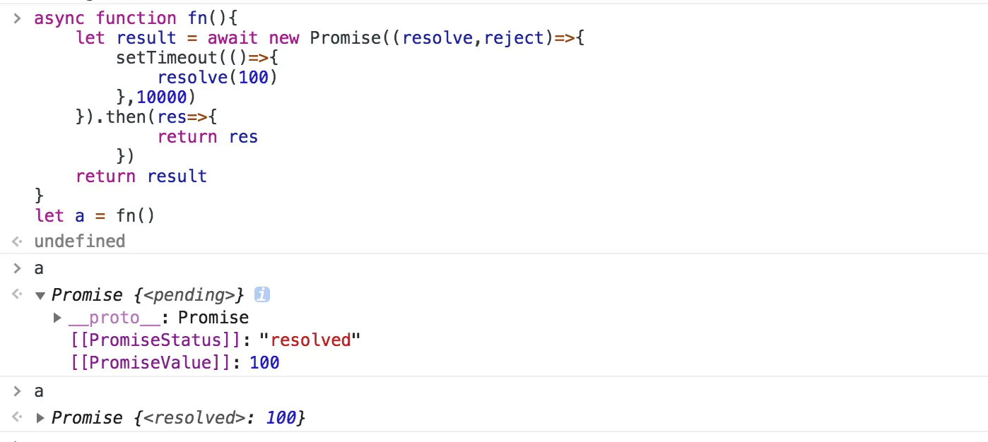 // 这样的async才能使await有效果,书写在promise之外的话await就会像上面一样报错