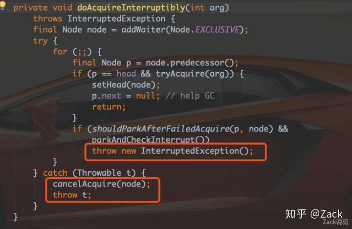 doAcquireInterruptibly()方法与acquireQueued()方法非常相似,不同就是前者在中断状态下,不会再继续获取锁。