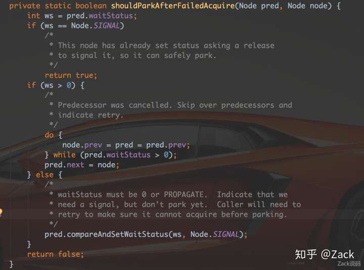 如果还是获取失败,则执行shouldParkAfterFailedAcquire(),根据前驱节点状态(子类设值)判断是否继续自旋(当waitStatus为初始值,重复上一步,直到前面的节点一直在减少到前驱节点为head)或者阻塞线程(当waitStatus标记为SIGNAL)