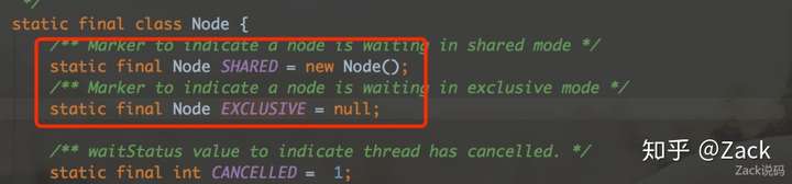 Node还有一个模式的属性:独占模式和共享模式。独占模式下,锁是线程独占的,而共享模式下,锁是可以被多个线程占用的。