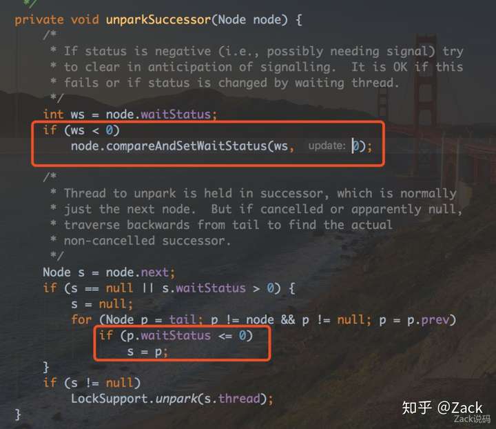 若释放成功,且waitStatus不为0(证明是SIGNAL的),就会执行unparkSuccessor(),先取消SIGNAL标志,然后找到最近一个需要SIGNAL的节点,并且唤醒它。