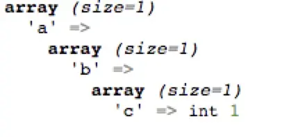 $result = array('a'=>array('b'=>array('c'=>1));
