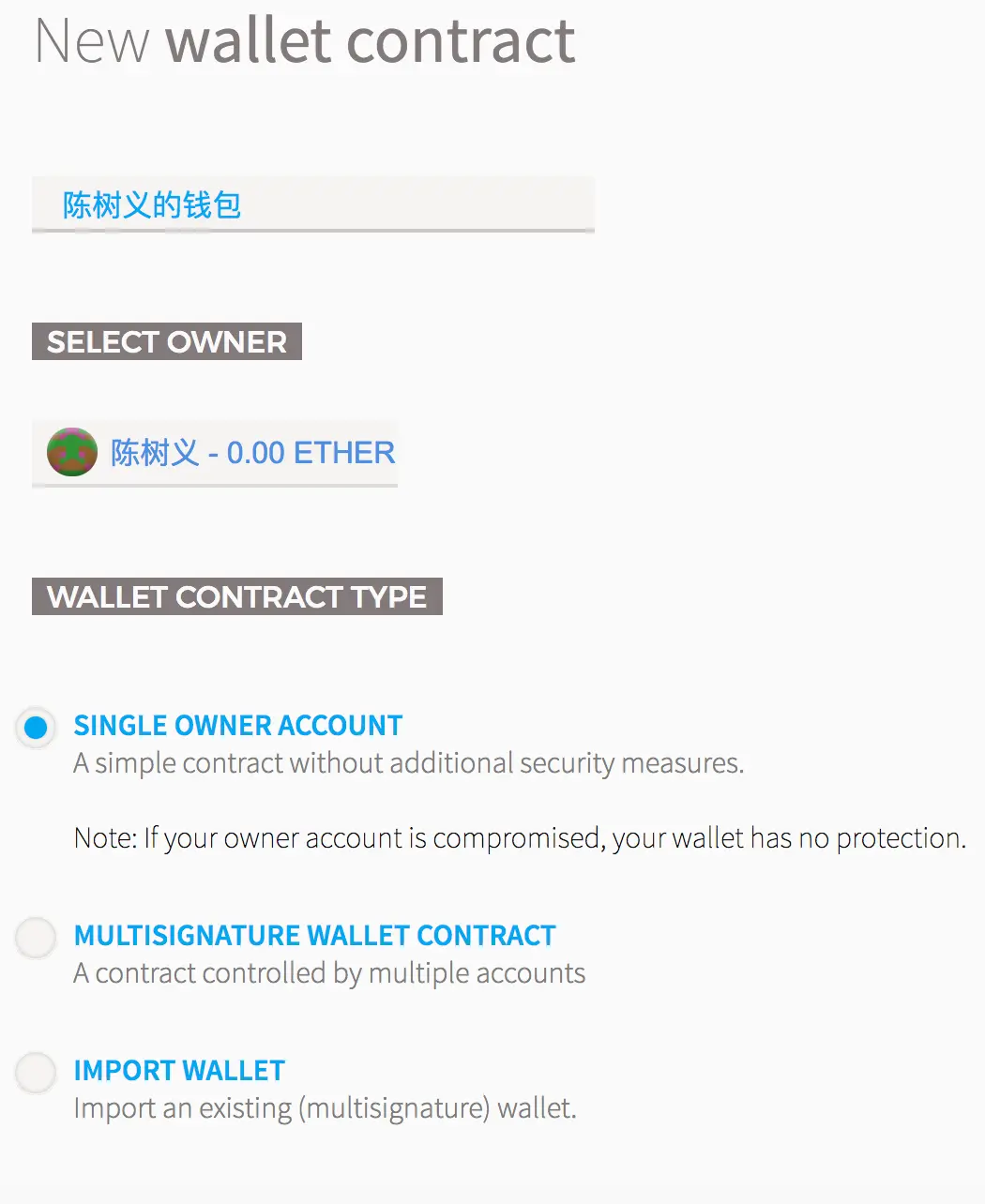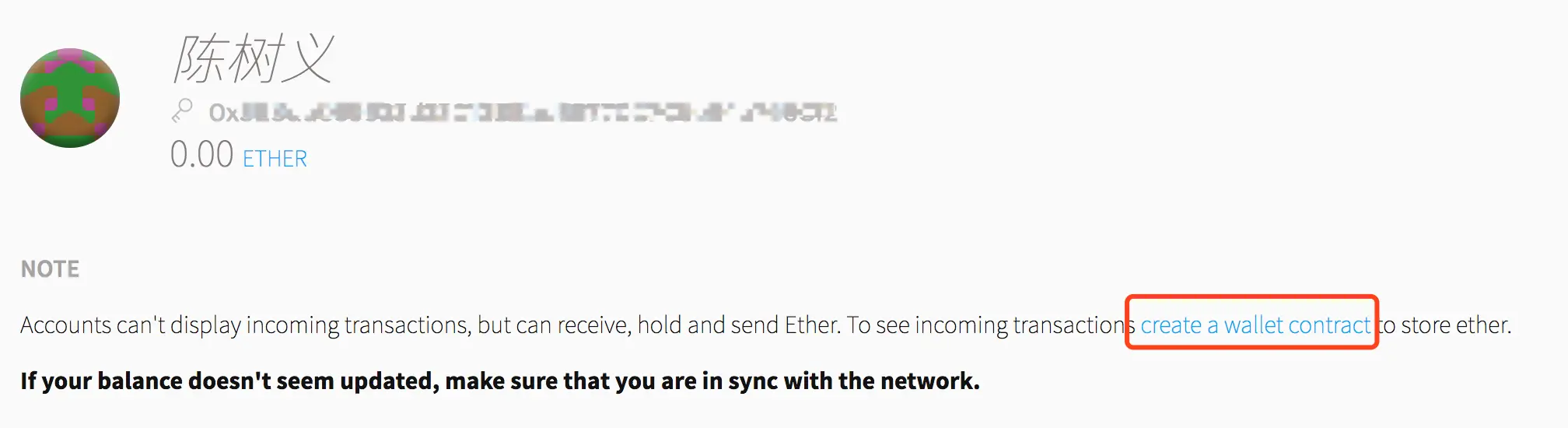 点击「create a wallet contract」再创建一个「以太坊钱包」。