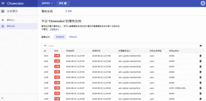 - 新增事务实例,开发者可以查看所有运行的事务,可以查看事务中任务的状态以及状态详情