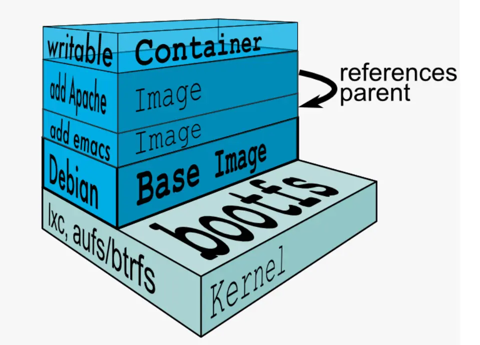 不同的Image之前可以共享分层。例如:apache的Image可以跟mysql的Image之间进行通信。