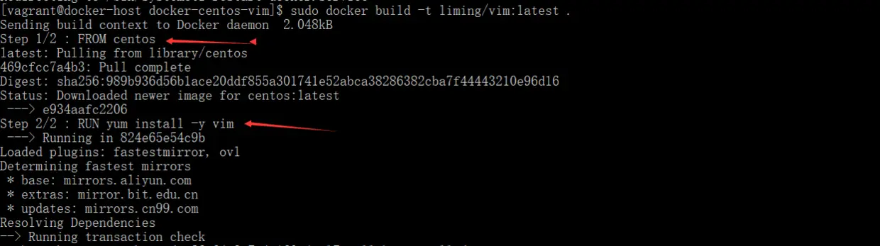 sudo docker build -t liming/vim:latest .