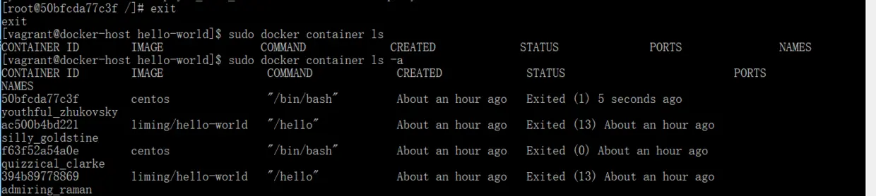 - 从容器内部退出,容器也变成了exited