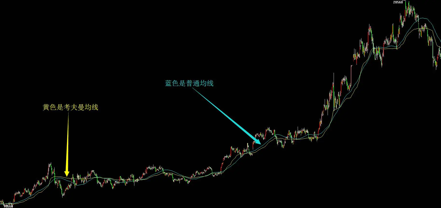 考夫曼自适应均线KAMA的计算公式及原理: 方向 = 价格 - n 日前价格 波动率=sum(abs(价格-上一个交易日价格),n) 效率= 方向/波动率 快速=2/(n1+1) 慢速=2/(n2+1) 平滑=效率*(快速-慢速)+ 慢速 系数=平滑平滑 KAMA=上一个交易日的KAMA+系数(价格-上一个交易日的KAMA)