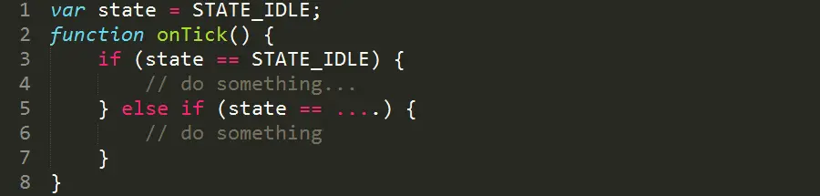 那么500毫秒内实际上发生的成交往往多于一次,里面具体什么情况完全是个黑盒子。特别在商品期货高频交易策略中,Tick行情的接收速度对策略的盈利结果有着决定性的影响。 而市面上大多数交易框架,都是采用回调模式的机制,也就是500毫秒最多只有一个Tick,这还是理想状态。真实情况下onBar/onTick,Tick不漏掉就不错了。为什么呢?因为onBar/onTick函数里面,你要处理一整遍代码逻辑,很浪费时间,不管你愿不愿意,你的策略逻辑必须被打断,必须采用状态机的模式,比如: