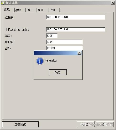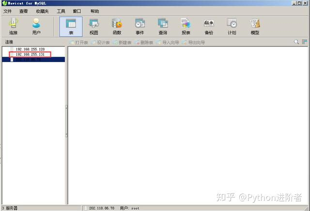 6、点击确定,之后在Navicat主页面中可以看到IP地址为192.168.255.131的数据库已经在Navicat中了。
