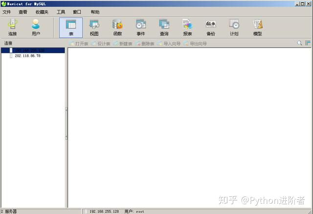 2、下图是Navicat的主页面,可以看到Navicat的导航栏和各类选项卡。
