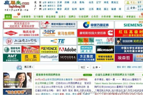 这个网站可以说是无所不包,不管什么样的岗位都有,什么样的公司也都有,当然全部都是针对校园招聘的。所以可想而知,要找到符合你目标公司和目标岗位的难度也会比较大。虽然大而全,但是筛选率差,缺少专业性。