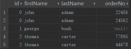 SELECT person.id,firstName,lastName,orderNo