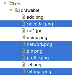 准备几张菜单项按钮图片,放置在 res/drawable 中: