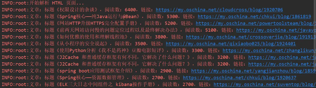 之后,通过 BeautifulSoup 来解析 HTML 页面,获取文章相关信息,之后,根据相关信息创建文章对象,放到集合中进行返回: