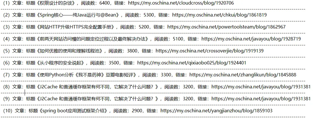 (99)文章:标题《理解 Dubbo SPI 扩展机制》,阅读数:1000,链接:https://my.oschina.net/j4love/blog/1813040