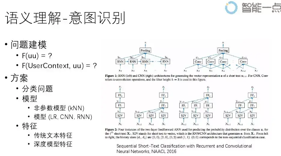 其实很多情况下是多轮对话,如果要支持多伦对话核心是如何维护对话状态。需要结合上下文理解用户意图是什么,使用两大类方式,一种是非参数模型,基于近似数据进行标注;再一种就是使用模型的方式。前者可控性更强,后者泛化性更强。在应用出现的问题有很多,比如历史训练数据是系统还未上线前的交互数据,上线后用户对话情景会发生变化。实体抽取有两种方式,一种是基于规则方式,另一种是基于序列标注。