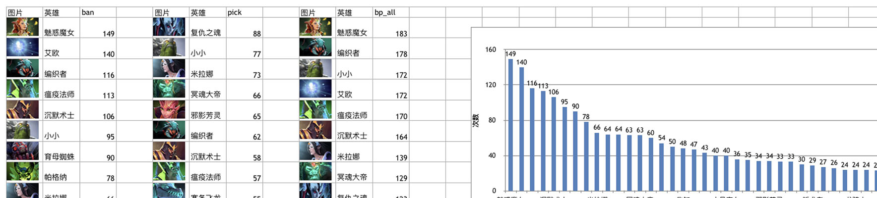 也可以统计所有英雄的出场次数,非搬即选bp_list。