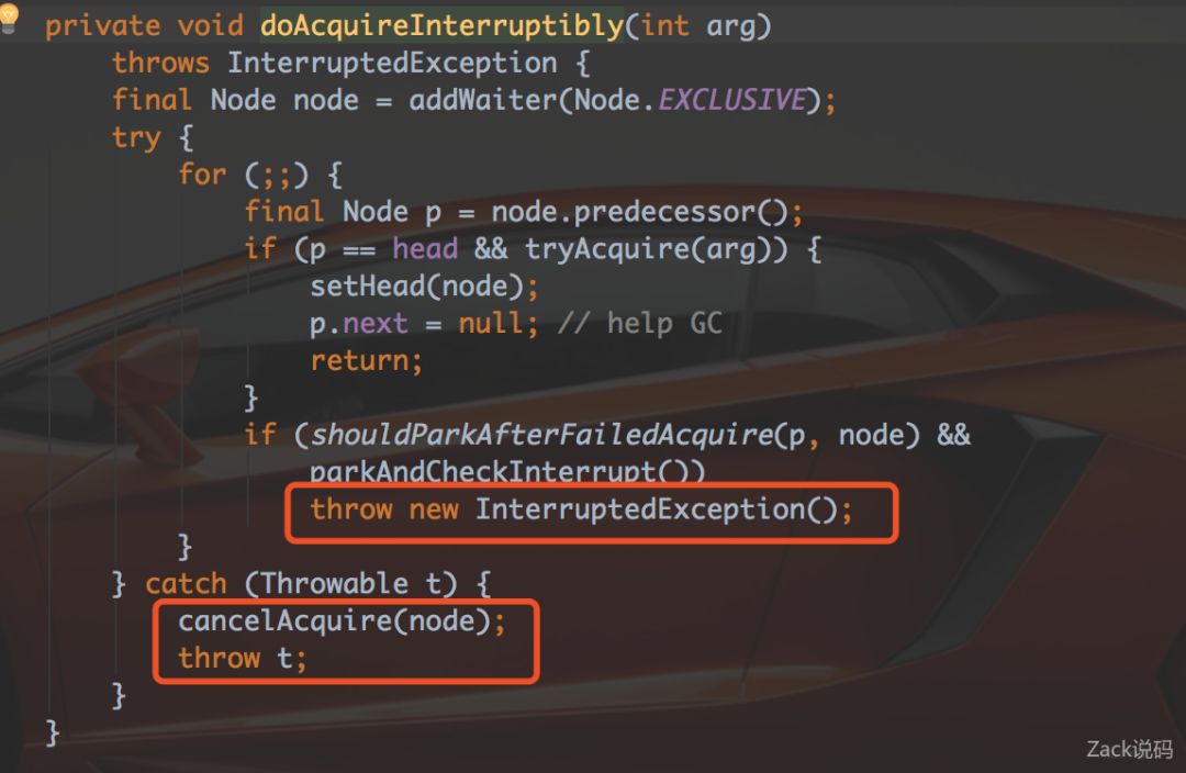 doAcquireInterruptibly()方法与acquireQueued() 方法非常相似,不同就是前者在中断状态下,不会再继续获取锁。