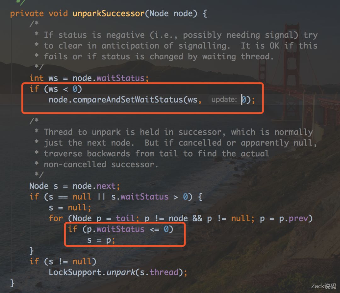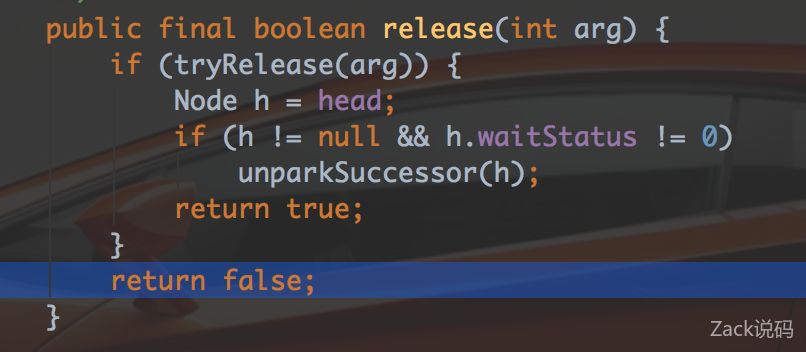 若释放成功,且waitStatus不为0(证明是SIGNAL的),就会执行unparkSuccessor(),先取消SIGNAL标志,然后找到最近一个需要SIGNAL的节点,并且唤醒它。