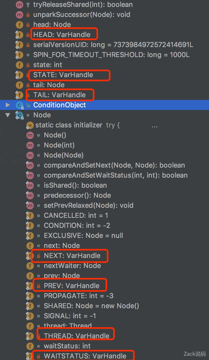 例如state、head、tail都有对应的VarHandler,STATE、HEAD、TAIL 。