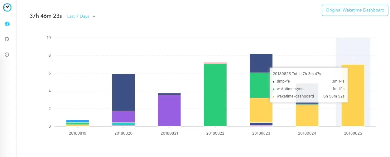 备份在 Gist 上的数据这只是第一步,最后的目的还是想通过备份的数据,查看所有的历史数据。因此便有了 wakatime-dashboard。