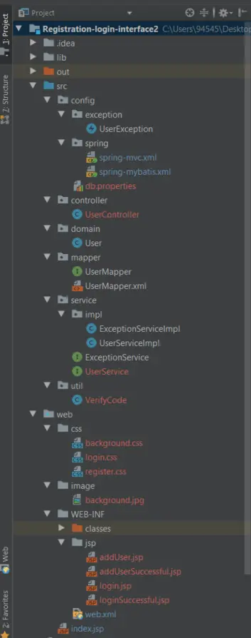 使用 SSM 框架来对原先的 Registration-login-interface 进行重构,页面做细微改动,后台使用框架,来达到同样的效果: