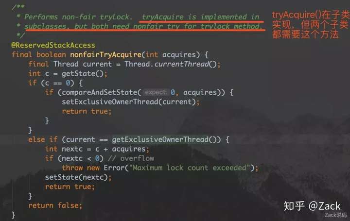 综上看,FairSync根本没有调用到nonfairTryAcquire(),为何说子类都需要用到呢?继续留着悬念,后面解答。