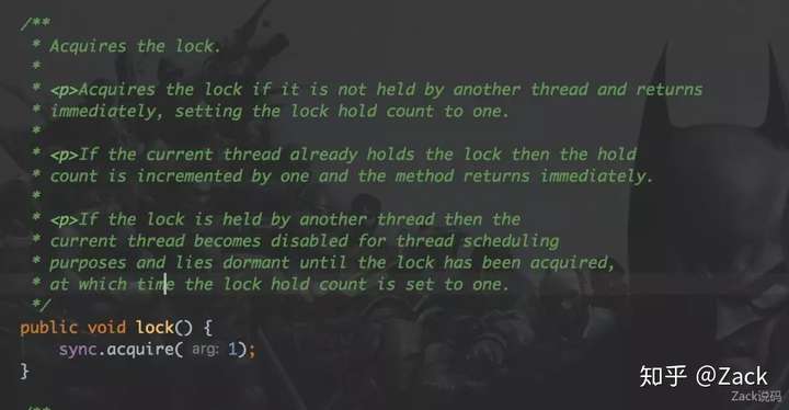 ReentrantLock里面的lock()方法是调用成员变量sync的acquire()。