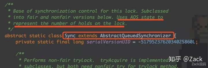 看注解可以知道,Sync用了AQS的state(状态原子值)来标识锁被持有的数量。