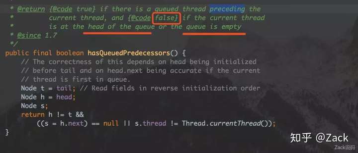这个方法用来判断是否队列为空,或者当前线程是否在队列的最前面。