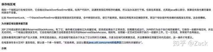 查找了下资料,这个是JEP 270添加的新注解。它会保护被注解的方法,通过添加一些额外的空间,防止在多线程运行的时候出现栈溢出。具体看下图