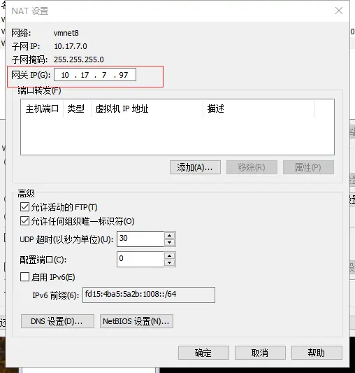 其实主要是为了让虚拟机和windows处在同一个网段和网关,这样就能ping通。