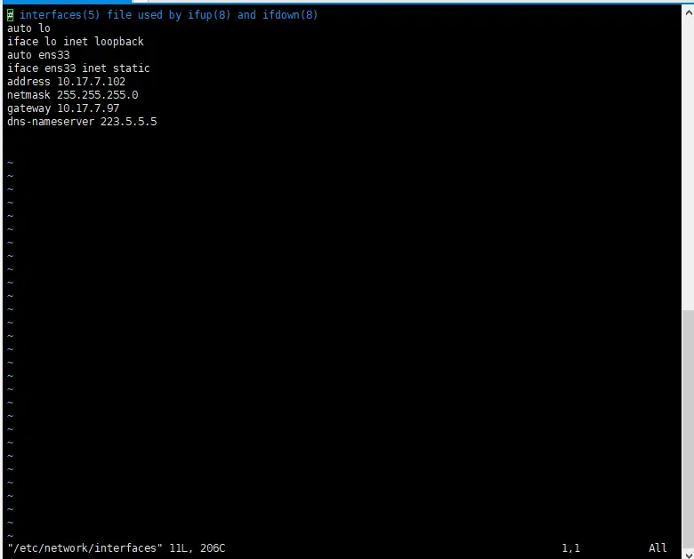 3. 修改interfaces文件 sudo vim /etc/network/interfaces