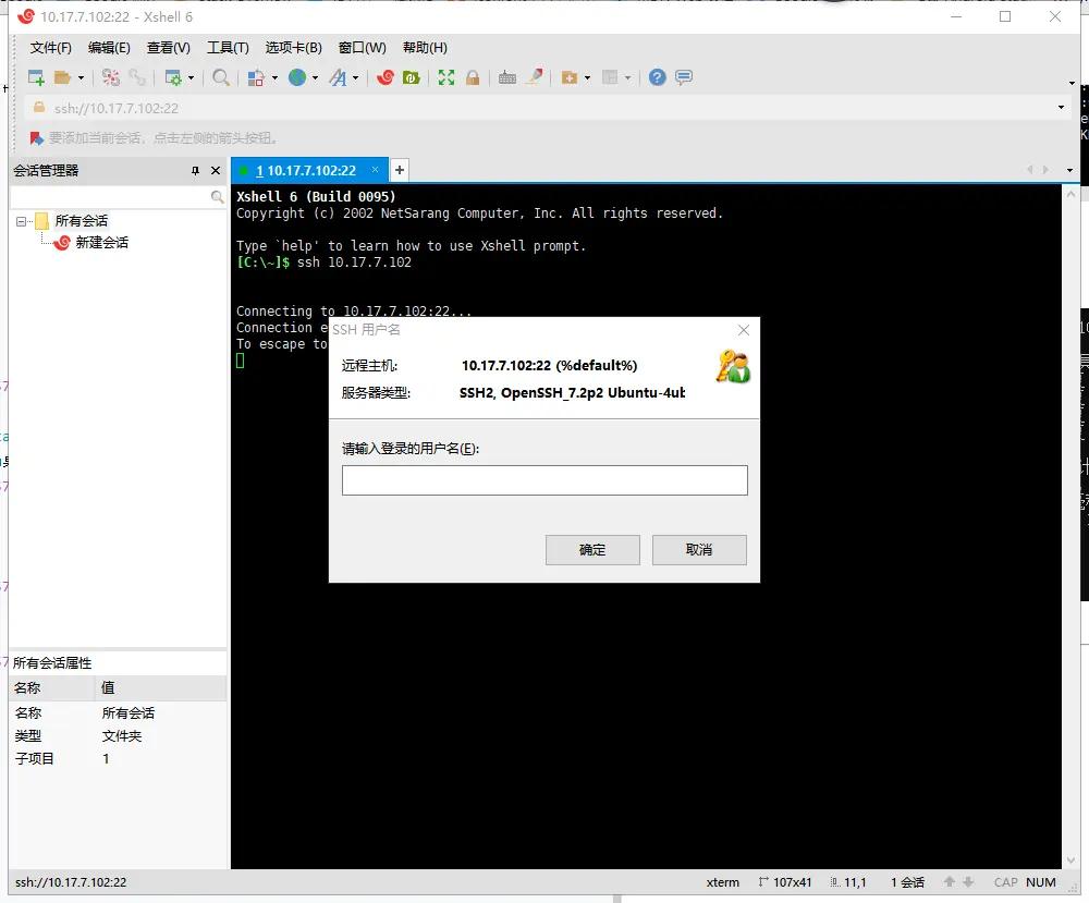 xshell连接命令ssh 10.17.7.102