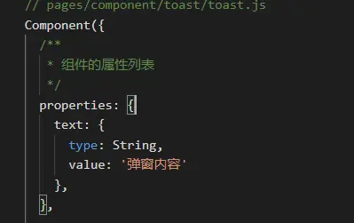 这里的** properties** 类似于 vue 中的 props,表示该对象下的属性将从外部传入 properties 可设置 type、value、observer 三个属性