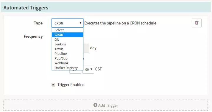 触发的方式:定时任务、人工触发、Jenkins job、Docker images,或者其他的Pipeline的步骤。