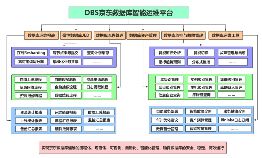 京东业务每年都在以爆发的形式在增长,数据库服务器的数量众多,产品线也多达上千条,要支持如此庞大的业务体系,需要一套完善的运维自动化管理平台。目前京东MySQL数据库管理平台简称DBS,主要涵盖以下内容:完善的资产管理系统、数据库流程管理系统、数据库监控系统、数据库故障管理系统、数据库报表系统、弹性数据库系统以及数据库辅助运维工具,涉及DBA运维的方方面面,实现了DBA对MySQL的自动化、自助化、可视化、智能化、服务化管理,避免DBA因手工操作失误带来的生产事故,保障京东数据库的安全、稳定、高效运行。