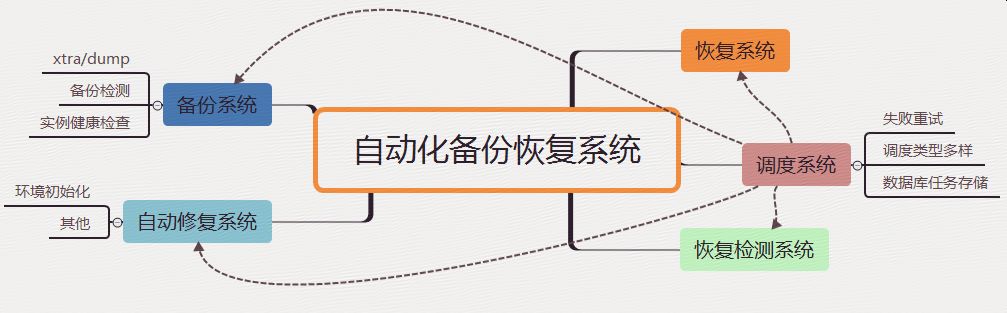 备份系统每次备份时都会进行实例健康状态检查、备份运行状态检查等,防止对无效的数据库实例进行备份;恢复系统主要是在需要进行数据恢复、弹性扩容等等需要从备份文件恢复成运行的数据库实例时使用,能够让DBA通过简单地操作即可完成数据的恢复;恢复检测在调度系统的指挥下自动对备份文件可用性进行检测,来帮助DBA及时发现不可用的备份文件;备份失败有些是能够通过失败自动重试来解决,但有一部分是重试所不能解决的,需要进行相应修复,因此开发了自动修复系统来自动修复因为环境等问题引起的备份失败。