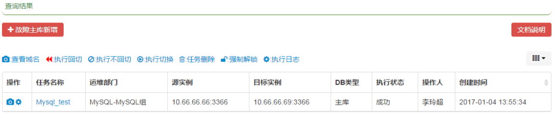 切换成功的任务会显示回切按钮,DBA可以执行回切,并查看回切的具体信息。