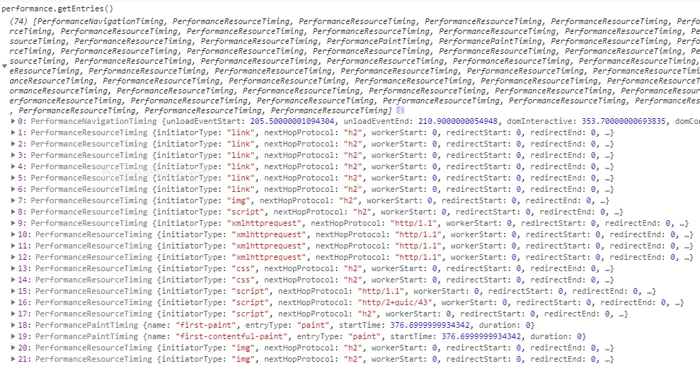 performance.getEntries();