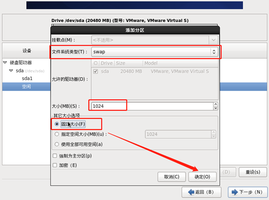 2、 交换分区swap,原则内存2倍,不超过2GB