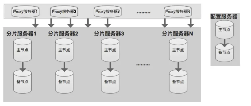 云数据库 Memcache 版由 Proxy 服务器(服务代理)、分片服务器和配置服务器三个组件组成。