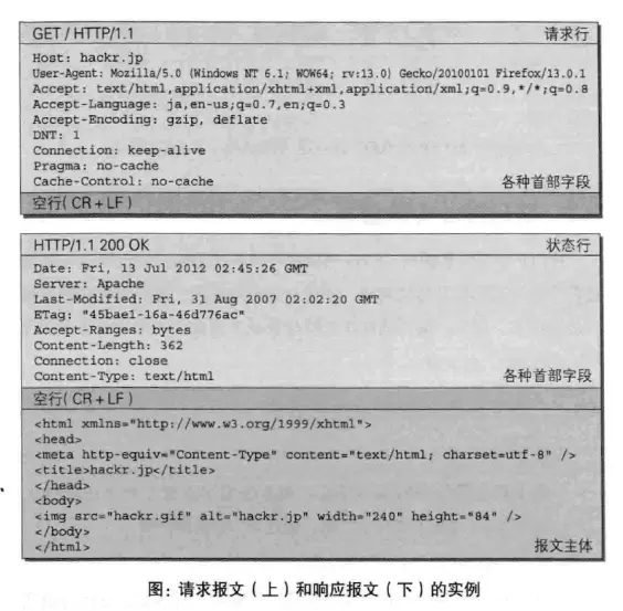 请求报文和响应报文的示例图: